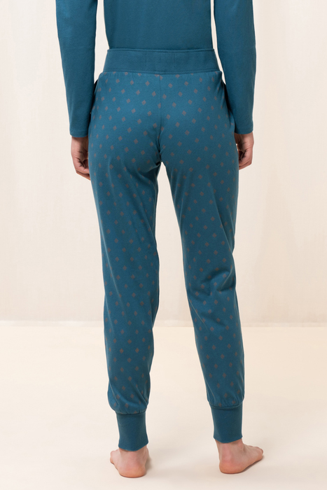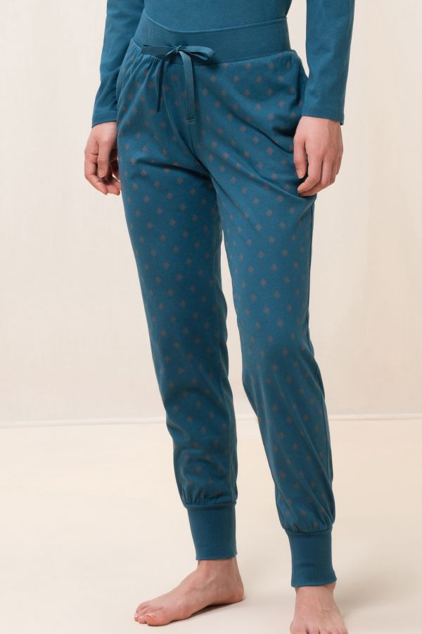 - este pantalon lung, cu manșetă;