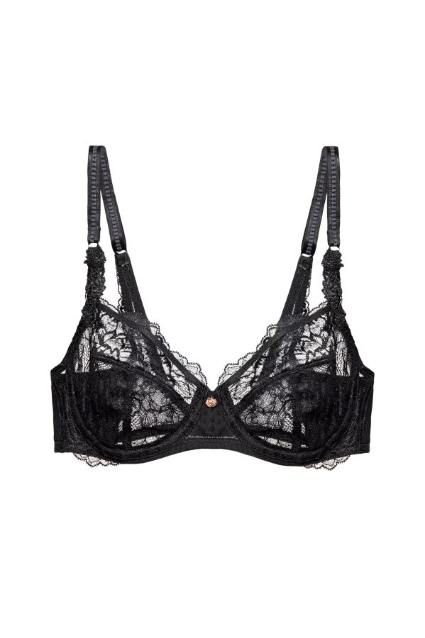 - este confecționat din dantelă delicată, feminină în combinație cu tulle elastic;